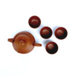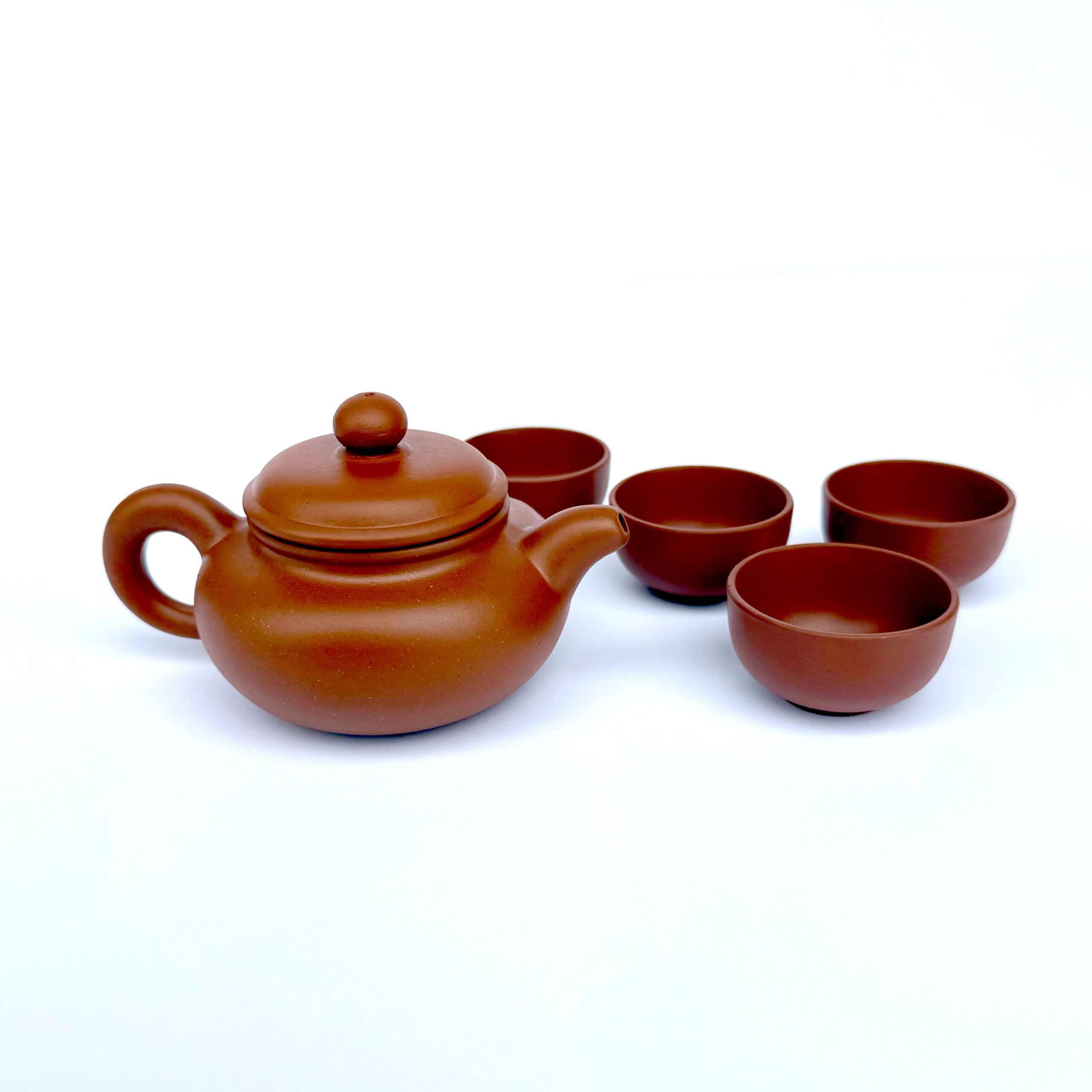 Before first use, rinse all pieces with hot water. Do not use soap, as clay is porous and absorbs flavor. After each session, rinse thoroughly with water and allow to air dry completely. Over time, the teapot will develop a patina that reflects your tea practice—handle with care and appreciation