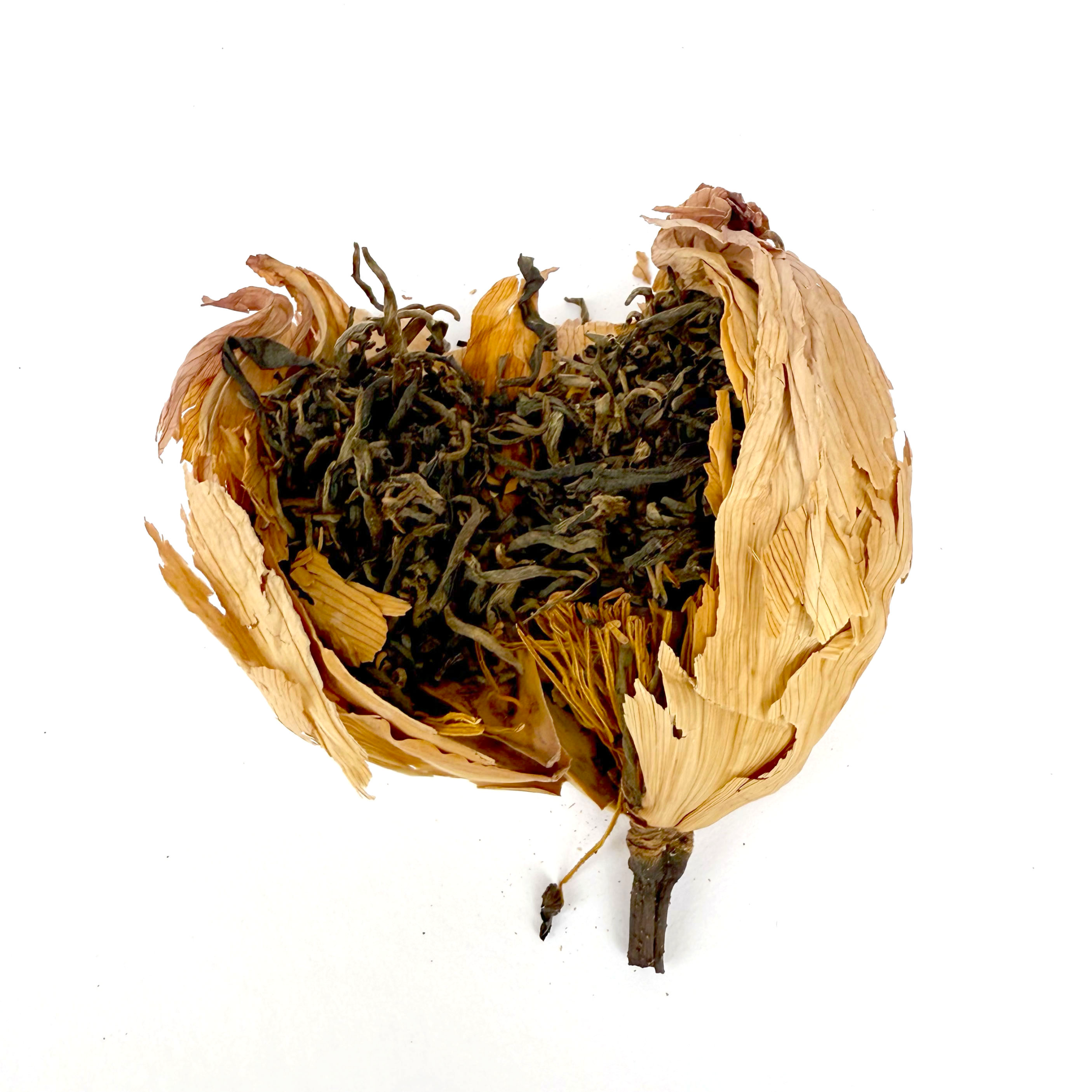 The result is a layered, meditative cup—deep and honeyed, with notes of baked fruit, soft spice, and a whisper of lotus blossom. The lotus wrapping softens the tea’s edges, offering a smooth, grounded body with a gentle floral lift